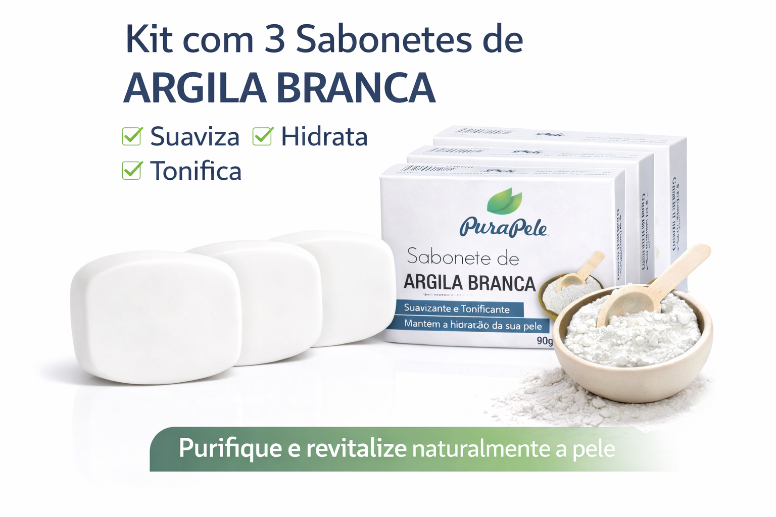 O Sabonete de Argila Branca PuraPele foi desenvolvido com argila branca mineral, conhecida por sua ação suavizante, purificante e revitalizante, ideal para quem busca uma pele mais equilibrada, macia e saudável desde a primeira aplicação.